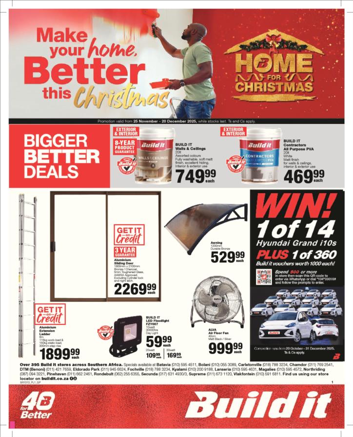 With our core values of Family, Entrepreneurship and Passion being at the heart of everything we do, the Build it group of over 390 stores across Southern Africa has been supplying quality building materials and serving our communities for more than 35 years.Each of our stores is deeply involved in the communities they serve and we believe in giving back to the communities that support us. One of the ways we do this is through initiatives such as our ongoing sponsorship of Under 13 Soccer development in Southern Africa - the youth are our future and by nurturing a healthy lifestyle through sport, we are building a better future for us all.For us at Build it, it’s become about more than just making home building simple. We’re on a mission possible – to turn “no” into “yes”, “can’t’ into “can” and our customers’ dreams into plans! That’s why we’ve adopted a spirit of positivity, a can-do attitude, a powerful essence and a culture that we live by… YES WE CAN!So when customers ask if we can provide the best service, a great range and excellent advice, our answer is always and without doubt…YES WE CAN!