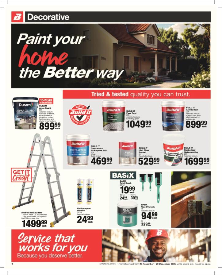 With our core values of Family, Entrepreneurship and Passion being at the heart of everything we do, the Build it group of over 390 stores across Southern Africa has been supplying quality building materials and serving our communities for more than 35 years.Each of our stores is deeply involved in the communities they serve and we believe in giving back to the communities that support us. One of the ways we do this is through initiatives such as our ongoing sponsorship of Under 13 Soccer development in Southern Africa - the youth are our future and by nurturing a healthy lifestyle through sport, we are building a better future for us all.For us at Build it, it’s become about more than just making home building simple. We’re on a mission possible – to turn “no” into “yes”, “can’t’ into “can” and our customers’ dreams into plans! That’s why we’ve adopted a spirit of positivity, a can-do attitude, a powerful essence and a culture that we live by… YES WE CAN!So when customers ask if we can provide the best service, a great range and excellent advice, our answer is always and without doubt…YES WE CAN!