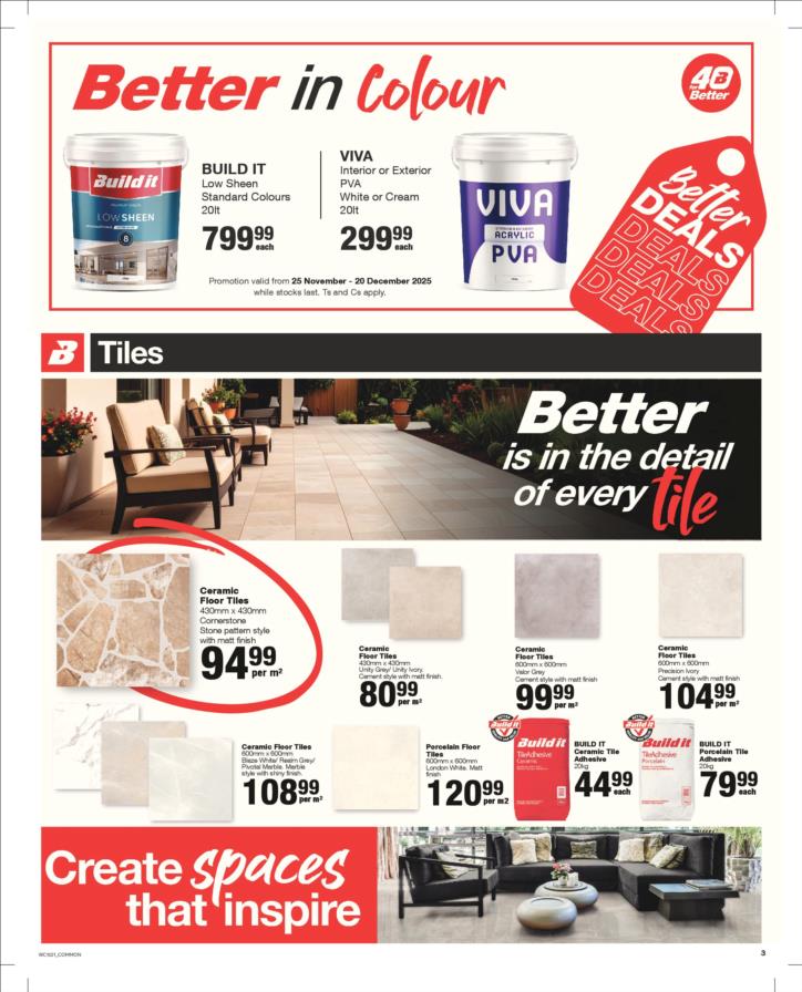 With our core values of Family, Entrepreneurship and Passion being at the heart of everything we do, the Build it group of over 390 stores across Southern Africa has been supplying quality building materials and serving our communities for more than 35 years.Each of our stores is deeply involved in the communities they serve and we believe in giving back to the communities that support us. One of the ways we do this is through initiatives such as our ongoing sponsorship of Under 13 Soccer development in Southern Africa - the youth are our future and by nurturing a healthy lifestyle through sport, we are building a better future for us all.For us at Build it, it’s become about more than just making home building simple. We’re on a mission possible – to turn “no” into “yes”, “can’t’ into “can” and our customers’ dreams into plans! That’s why we’ve adopted a spirit of positivity, a can-do attitude, a powerful essence and a culture that we live by… YES WE CAN!So when customers ask if we can provide the best service, a great range and excellent advice, our answer is always and without doubt…YES WE CAN!