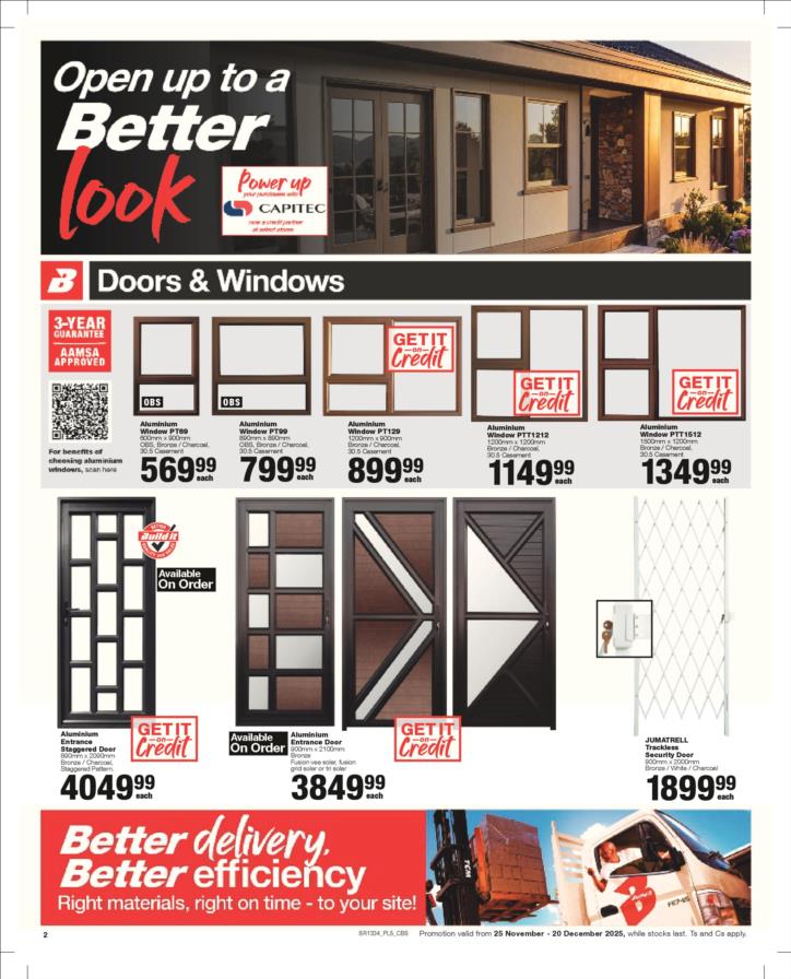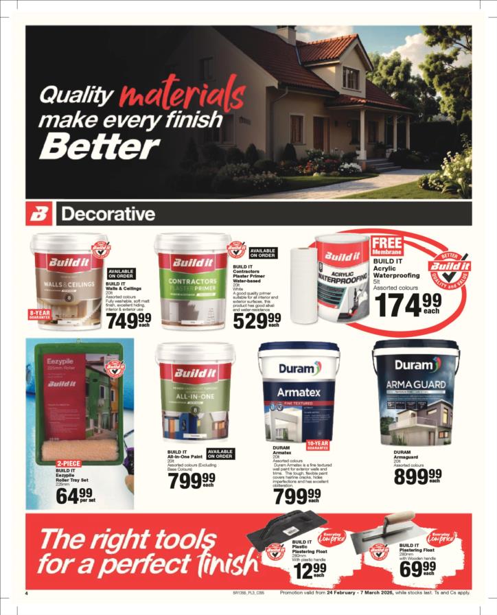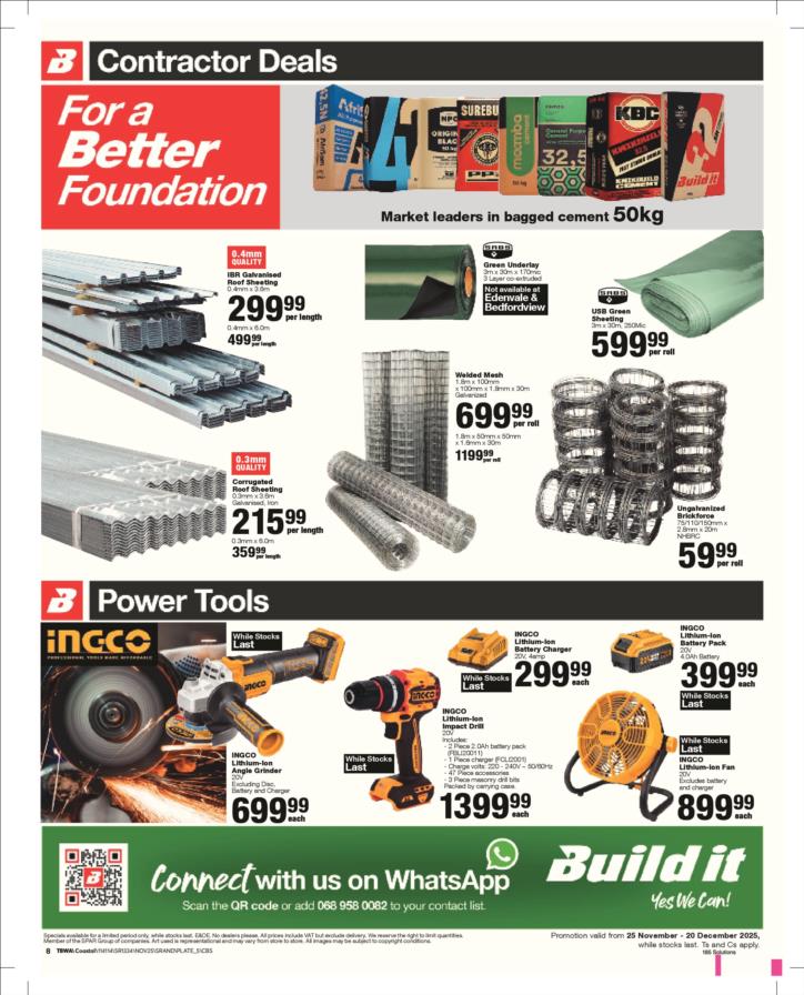 With our core values of Family, Entrepreneurship and Passion being at the heart of everything we do, the Build it group of over 390 stores across Southern Africa has been supplying quality building materials and serving our communities for more than 35 years.Each of our stores is deeply involved in the communities they serve and we believe in giving back to the communities that support us. One of the ways we do this is through initiatives such as our ongoing sponsorship of Under 13 Soccer development in Southern Africa - the youth are our future and by nurturing a healthy lifestyle through sport, we are building a better future for us all.For us at Build it, it’s become about more than just making home building simple. We’re on a mission possible – to turn “no” into “yes”, “can’t’ into “can” and our customers’ dreams into plans! That’s why we’ve adopted a spirit of positivity, a can-do attitude, a powerful essence and a culture that we live by… YES WE CAN!So when customers ask if we can provide the best service, a great range and excellent advice, our answer is always and without doubt…YES WE CAN!