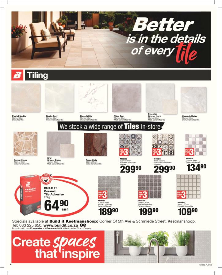 With our core values of Family, Entrepreneurship and Passion being at the heart of everything we do, the Build it group of over 390 stores across Southern Africa has been supplying quality building materials and serving our communities for more than 35 years.Each of our stores is deeply involved in the communities they serve and we believe in giving back to the communities that support us. One of the ways we do this is through initiatives such as our ongoing sponsorship of Under 13 Soccer development in Southern Africa - the youth are our future and by nurturing a healthy lifestyle through sport, we are building a better future for us all.For us at Build it, it’s become about more than just making home building simple. We’re on a mission possible – to turn “no” into “yes”, “can’t’ into “can” and our customers’ dreams into plans! That’s why we’ve adopted a spirit of positivity, a can-do attitude, a powerful essence and a culture that we live by… YES WE CAN!So when customers ask if we can provide the best service, a great range and excellent advice, our answer is always and without doubt…YES WE CAN!