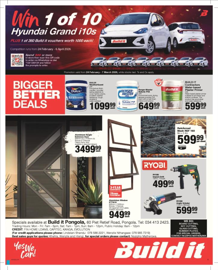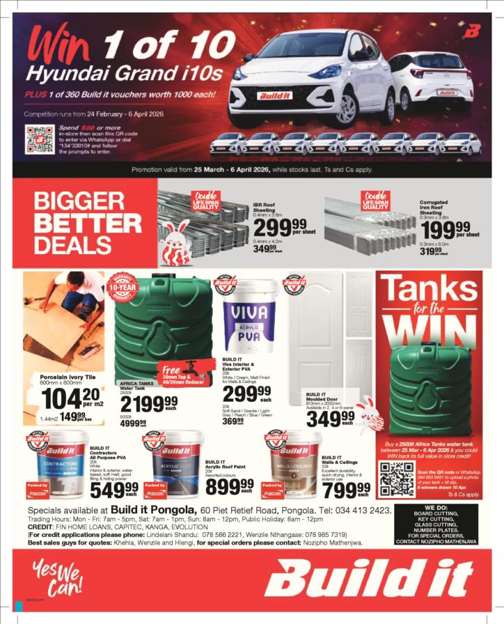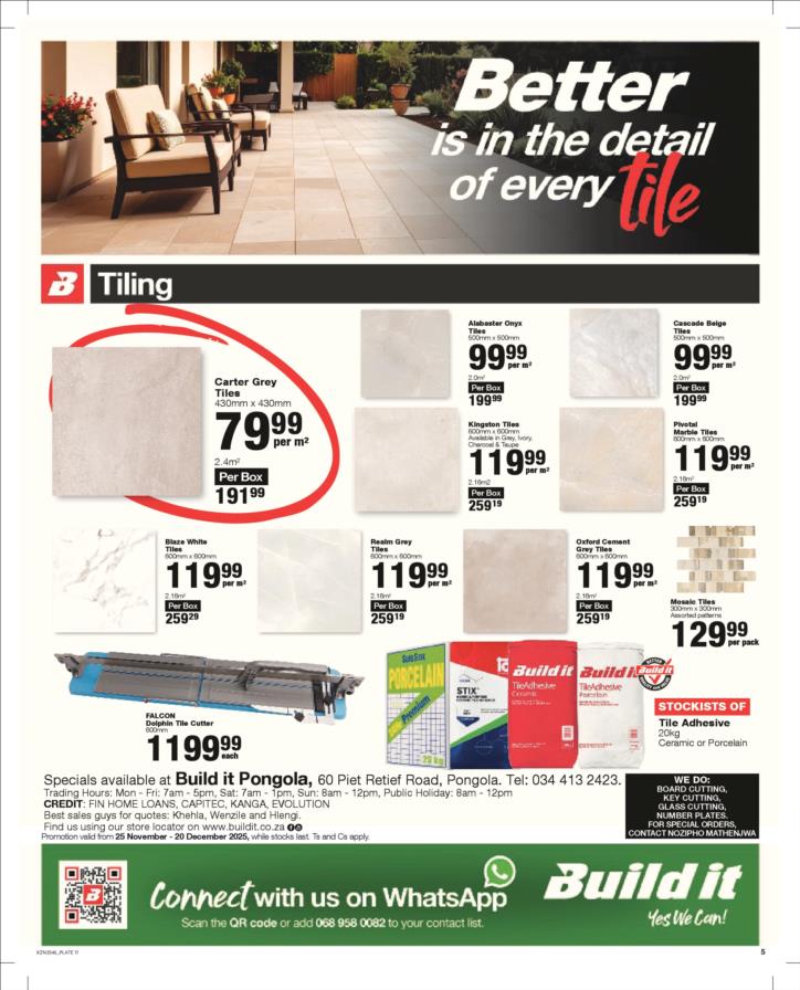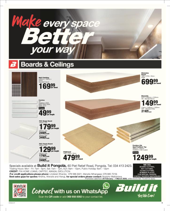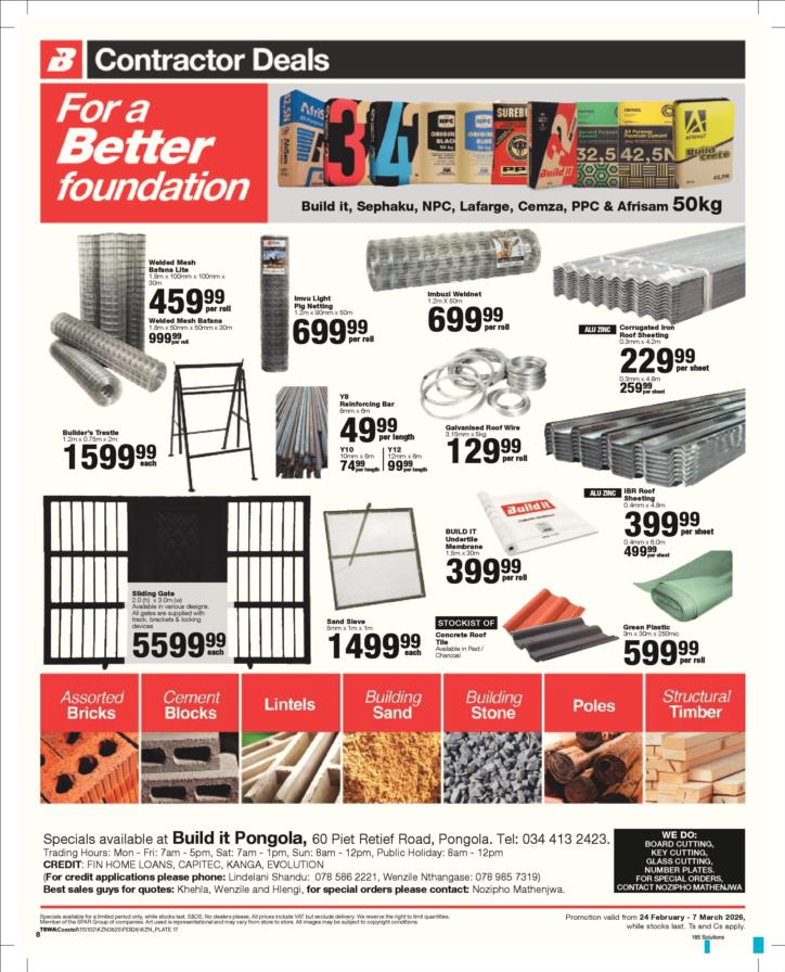 Tel: (034) 413 2423 Mobile: (066) 47 6 2873 WhatsApp: Email: pongolabuildit2@retail.spar.co.za