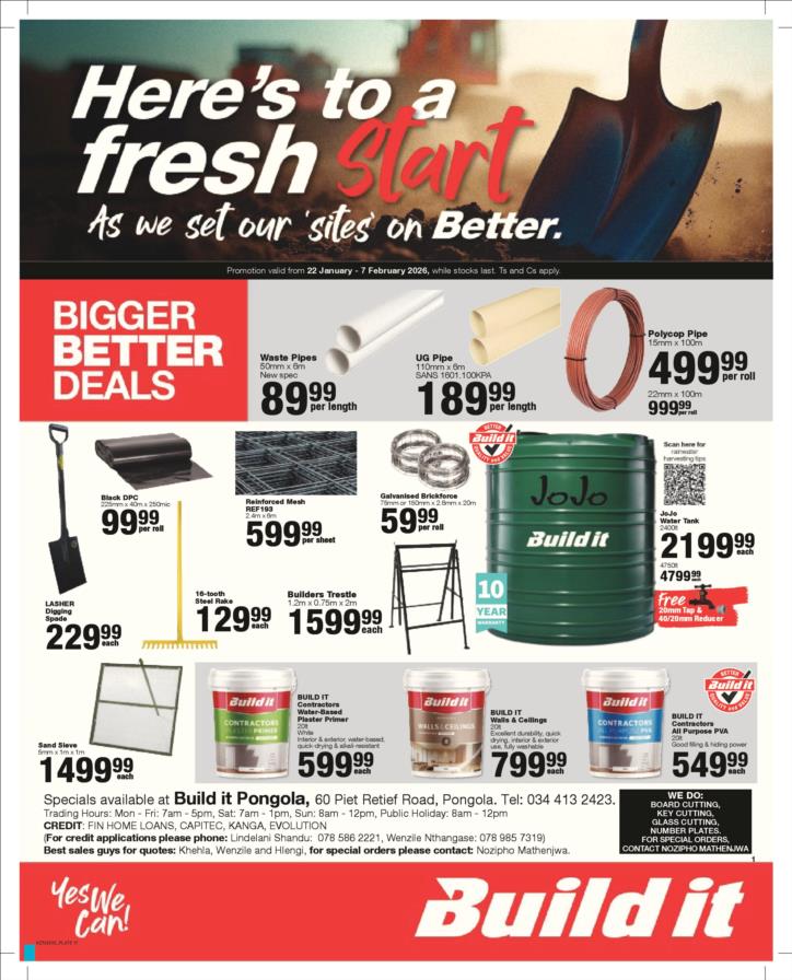 With our core values of Family, Entrepreneurship and Passion being at the heart of everything we do, the Build it group of over 390 stores across Southern Africa has been supplying quality building materials and serving our communities for more than 35 years.Each of our stores is deeply involved in the communities they serve and we believe in giving back to the communities that support us. One of the ways we do this is through initiatives such as our ongoing sponsorship of Under 13 Soccer development in Southern Africa - the youth are our future and by nurturing a healthy lifestyle through sport, we are building a better future for us all.For us at Build it, it’s become about more than just making home building simple. We’re on a mission possible – to turn “no” into “yes”, “can’t’ into “can” and our customers’ dreams into plans! That’s why we’ve adopted a spirit of positivity, a can-do attitude, a powerful essence and a culture that we live by… YES WE CAN!So when customers ask if we can provide the best service, a great range and excellent advice, our answer is always and without doubt…YES WE CAN!