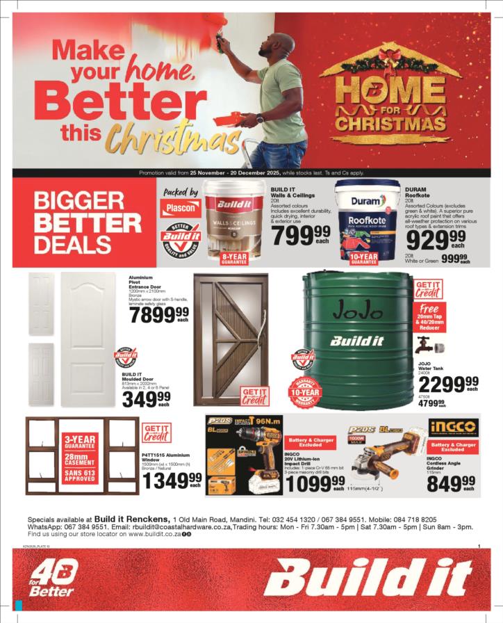 With our core values of Family, Entrepreneurship and Passion being at the heart of everything we do, the Build it group of over 390 stores across Southern Africa has been supplying quality building materials and serving our communities for more than 35 years.Each of our stores is deeply involved in the communities they serve and we believe in giving back to the communities that support us. One of the ways we do this is through initiatives such as our ongoing sponsorship of Under 13 Soccer development in Southern Africa - the youth are our future and by nurturing a healthy lifestyle through sport, we are building a better future for us all.For us at Build it, it’s become about more than just making home building simple. We’re on a mission possible – to turn “no” into “yes”, “can’t’ into “can” and our customers’ dreams into plans! That’s why we’ve adopted a spirit of positivity, a can-do attitude, a powerful essence and a culture that we live by… YES WE CAN!So when customers ask if we can provide the best service, a great range and excellent advice, our answer is always and without doubt…YES WE CAN!