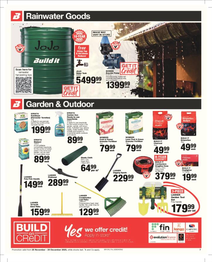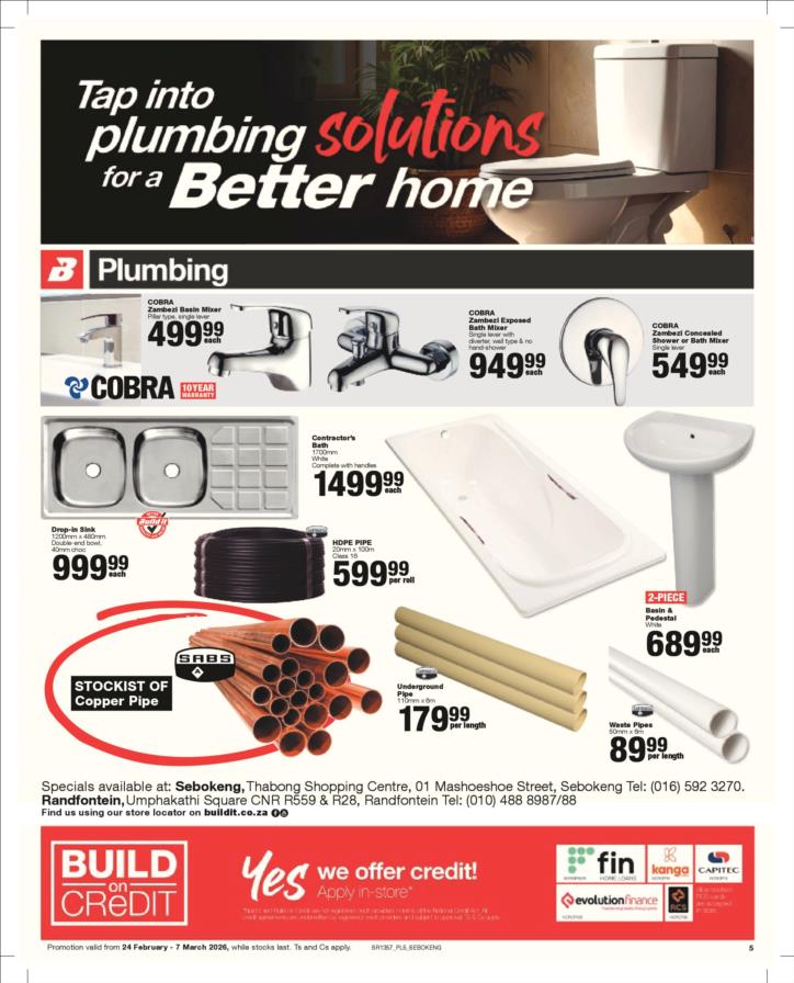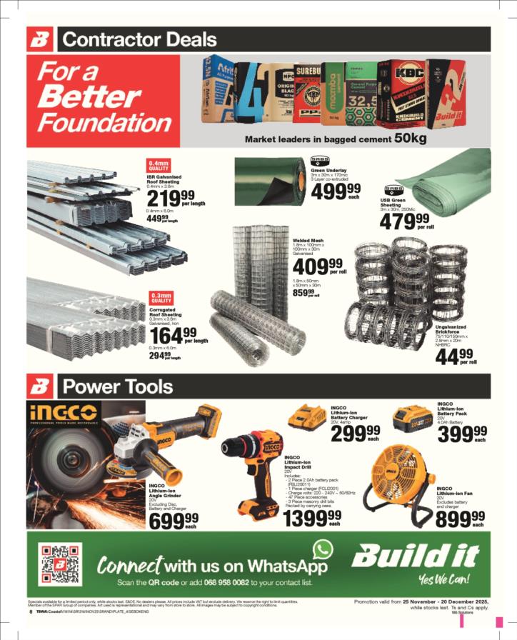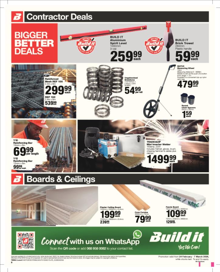 Tel: (018) 065 0899 Mobile: WhatsApp: (060) 531 5964 Email: sales@builditsbk.co.za
