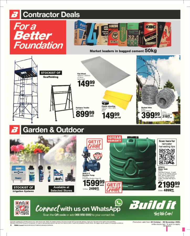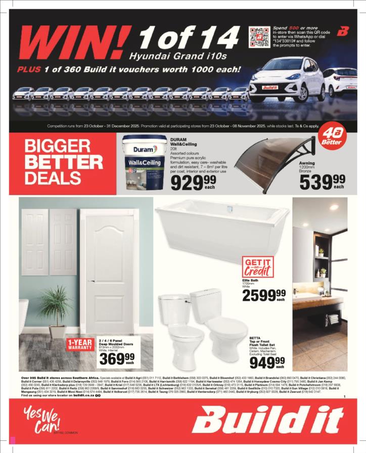 With our core values of Family, Entrepreneurship and Passion being at the heart of everything we do, the Build it group of over 390 stores across Southern Africa has been supplying quality building materials and serving our communities for more than 35 years.Each of our stores is deeply involved in the communities they serve and we believe in giving back to the communities that support us. One of the ways we do this is through initiatives such as our ongoing sponsorship of Under 13 Soccer development in Southern Africa - the youth are our future and by nurturing a healthy lifestyle through sport, we are building a better future for us all.For us at Build it, it’s become about more than just making home building simple. We’re on a mission possible – to turn “no” into “yes”, “can’t’ into “can” and our customers’ dreams into plans! That’s why we’ve adopted a spirit of positivity, a can-do attitude, a powerful essence and a culture that we live by… YES WE CAN!So when customers ask if we can provide the best service, a great range and excellent advice, our answer is always and without doubt…YES WE CAN!