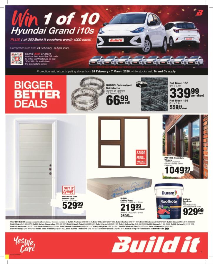 With our core values of Family, Entrepreneurship and Passion being at the heart of everything we do, the Build it group of over 390 stores across Southern Africa has been supplying quality building materials and serving our communities for more than 35 years.Each of our stores is deeply involved in the communities they serve and we believe in giving back to the communities that support us. One of the ways we do this is through initiatives such as our ongoing sponsorship of Under 13 Soccer development in Southern Africa - the youth are our future and by nurturing a healthy lifestyle through sport, we are building a better future for us all.For us at Build it, it’s become about more than just making home building simple. We’re on a mission possible – to turn “no” into “yes”, “can’t’ into “can” and our customers’ dreams into plans! That’s why we’ve adopted a spirit of positivity, a can-do attitude, a powerful essence and a culture that we live by… YES WE CAN!So when customers ask if we can provide the best service, a great range and excellent advice, our answer is always and without doubt…YES WE CAN!