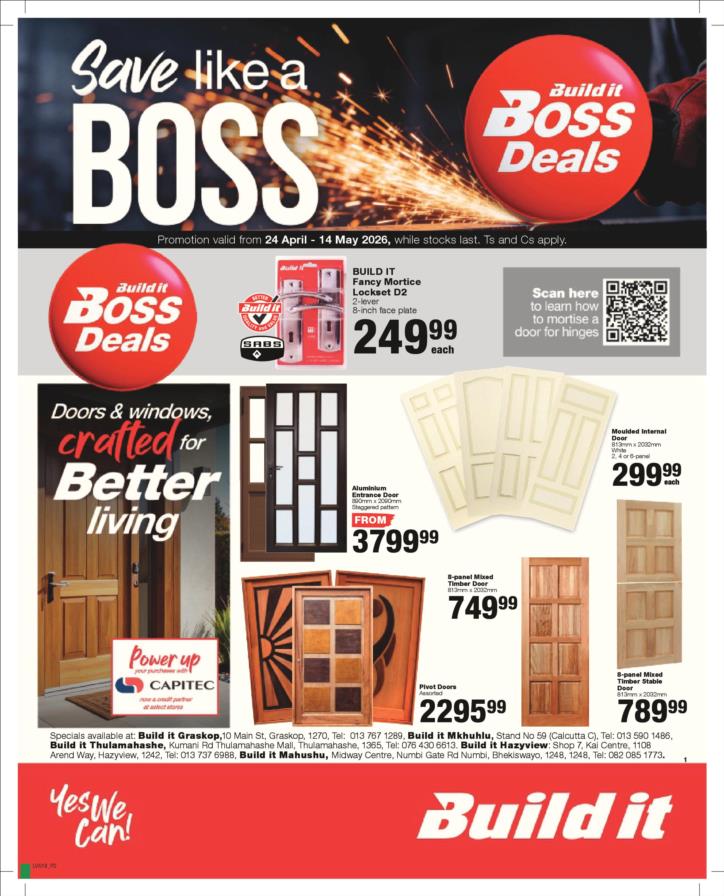 With our core values of Family, Entrepreneurship and Passion being at the heart of everything we do, the Build it group of over 390 stores across Southern Africa has been supplying quality building materials and serving our communities for more than 35 years.Each of our stores is deeply involved in the communities they serve and we believe in giving back to the communities that support us. One of the ways we do this is through initiatives such as our ongoing sponsorship of Under 13 Soccer development in Southern Africa - the youth are our future and by nurturing a healthy lifestyle through sport, we are building a better future for us all.For us at Build it, it’s become about more than just making home building simple. We’re on a mission possible – to turn “no” into “yes”, “can’t’ into “can” and our customers’ dreams into plans! That’s why we’ve adopted a spirit of positivity, a can-do attitude, a powerful essence and a culture that we live by… YES WE CAN!So when customers ask if we can provide the best service, a great range and excellent advice, our answer is always and without doubt…YES WE CAN!