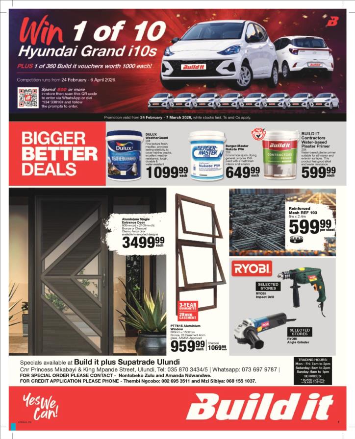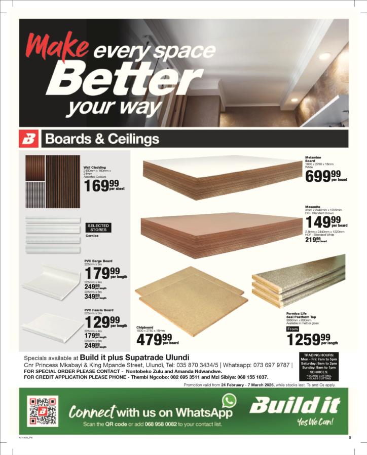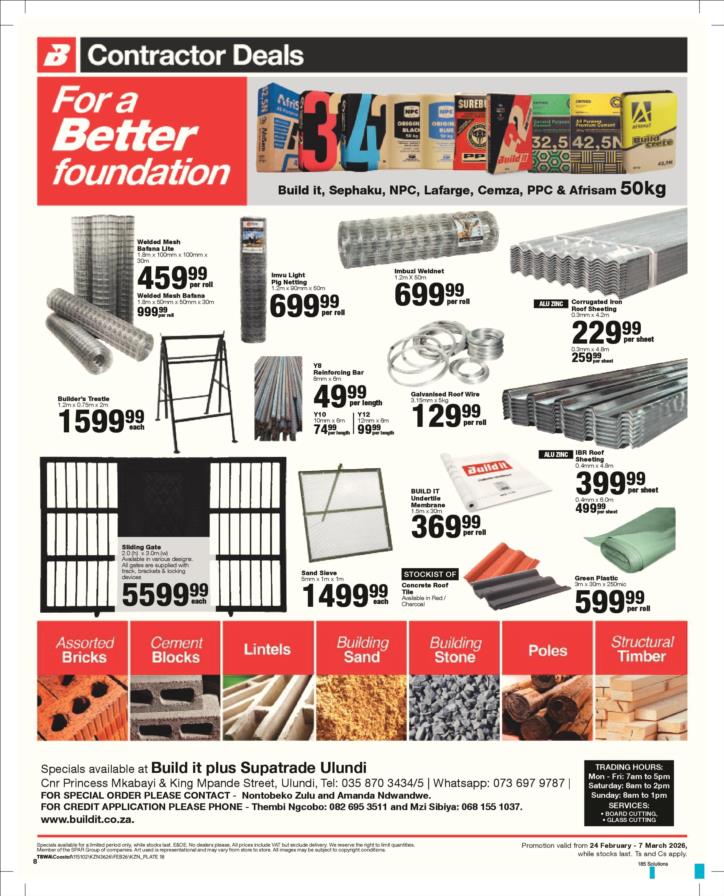 Tel: (035) 870 3434 Mobile: WhatsApp: Email: ulundibuildit1@retail.spar.co.za