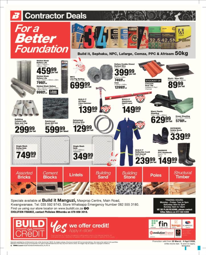 Tel: (035) 592 9743 Mobile: WhatsApp: Email: manguzibuildit1@retail.spar.co.za