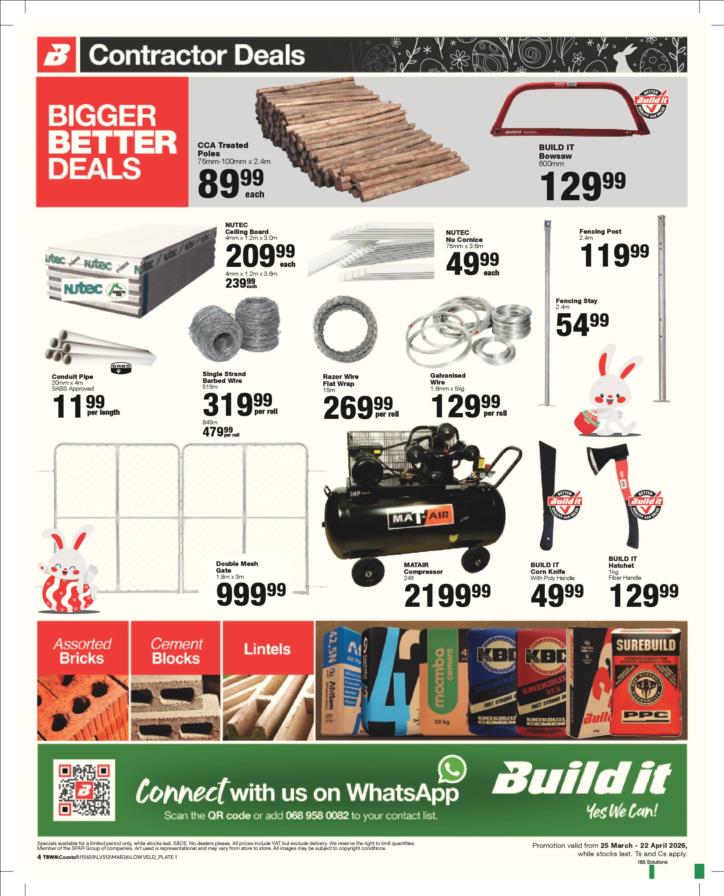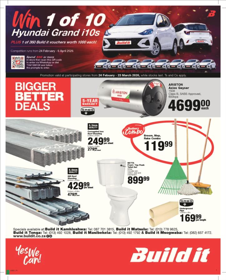 With our core values of Family, Entrepreneurship and Passion being at the heart of everything we do, the Build it group of over 390 stores across Southern Africa has been supplying quality building materials and serving our communities for more than 35 years.Each of our stores is deeply involved in the communities they serve and we believe in giving back to the communities that support us. One of the ways we do this is through initiatives such as our ongoing sponsorship of Under 13 Soccer development in Southern Africa - the youth are our future and by nurturing a healthy lifestyle through sport, we are building a better future for us all.For us at Build it, it’s become about more than just making home building simple. We’re on a mission possible – to turn “no” into “yes”, “can’t’ into “can” and our customers’ dreams into plans! That’s why we’ve adopted a spirit of positivity, a can-do attitude, a powerful essence and a culture that we live by… YES WE CAN!So when customers ask if we can provide the best service, a great range and excellent advice, our answer is always and without doubt…YES WE CAN!