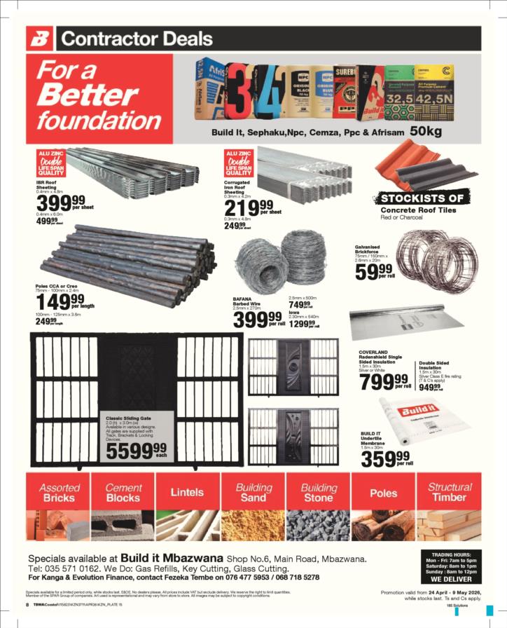 Tel: (035) 571 0162 Mobile: WhatsApp: Email: mbazwanabuildit1@retail.spar.co.za
