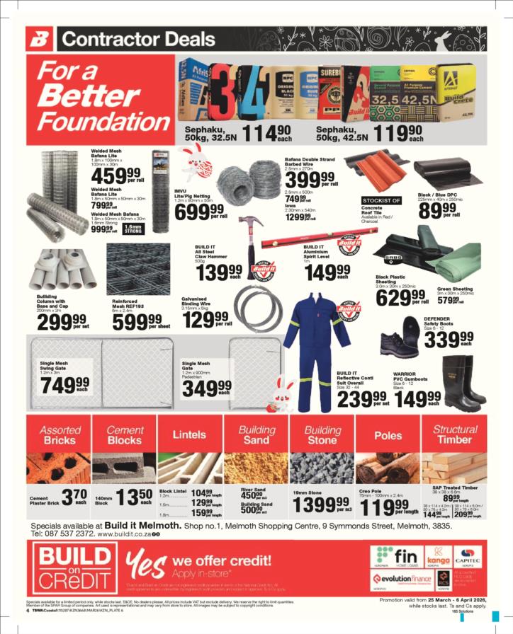With our core values of Family, Entrepreneurship and Passion being at the heart of everything we do, the Build it group of over 390 stores across Southern Africa has been supplying quality building materials and serving our communities for more than 35 years.Each of our stores is deeply involved in the communities they serve and we believe in giving back to the communities that support us. One of the ways we do this is through initiatives such as our ongoing sponsorship of Under 13 Soccer development in Southern Africa - the youth are our future and by nurturing a healthy lifestyle through sport, we are building a better future for us all.For us at Build it, it’s become about more than just making home building simple. We’re on a mission possible – to turn “no” into “yes”, “can’t’ into “can” and our customers’ dreams into plans! That’s why we’ve adopted a spirit of positivity, a can-do attitude, a powerful essence and a culture that we live by… YES WE CAN!So when customers ask if we can provide the best service, a great range and excellent advice, our answer is always and without doubt…YES WE CAN!
