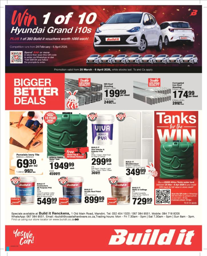 With our core values of Family, Entrepreneurship and Passion being at the heart of everything we do, the Build it group of over 390 stores across Southern Africa has been supplying quality building materials and serving our communities for more than 35 years.Each of our stores is deeply involved in the communities they serve and we believe in giving back to the communities that support us. One of the ways we do this is through initiatives such as our ongoing sponsorship of Under 13 Soccer development in Southern Africa - the youth are our future and by nurturing a healthy lifestyle through sport, we are building a better future for us all.For us at Build it, it’s become about more than just making home building simple. We’re on a mission possible – to turn “no” into “yes”, “can’t’ into “can” and our customers’ dreams into plans! That’s why we’ve adopted a spirit of positivity, a can-do attitude, a powerful essence and a culture that we live by… YES WE CAN!So when customers ask if we can provide the best service, a great range and excellent advice, our answer is always and without doubt…YES WE CAN!