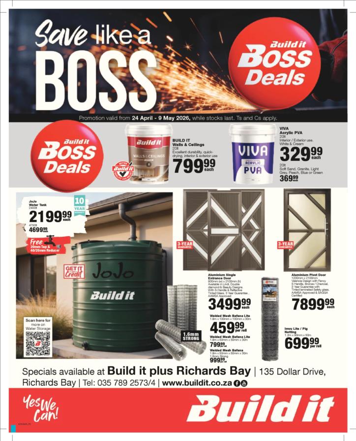 With our core values of Family, Entrepreneurship and Passion being at the heart of everything we do, the Build it group of over 390 stores across Southern Africa has been supplying quality building materials and serving our communities for more than 35 years.Each of our stores is deeply involved in the communities they serve and we believe in giving back to the communities that support us. One of the ways we do this is through initiatives such as our ongoing sponsorship of Under 13 Soccer development in Southern Africa - the youth are our future and by nurturing a healthy lifestyle through sport, we are building a better future for us all.For us at Build it, it’s become about more than just making home building simple. We’re on a mission possible – to turn “no” into “yes”, “can’t’ into “can” and our customers’ dreams into plans! That’s why we’ve adopted a spirit of positivity, a can-do attitude, a powerful essence and a culture that we live by… YES WE CAN!So when customers ask if we can provide the best service, a great range and excellent advice, our answer is always and without doubt…YES WE CAN!