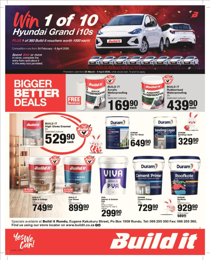 With our core values of Family, Entrepreneurship and Passion being at the heart of everything we do, the Build it group of over 390 stores across Southern Africa has been supplying quality building materials and serving our communities for more than 35 years.Each of our stores is deeply involved in the communities they serve and we believe in giving back to the communities that support us. One of the ways we do this is through initiatives such as our ongoing sponsorship of Under 13 Soccer development in Southern Africa - the youth are our future and by nurturing a healthy lifestyle through sport, we are building a better future for us all.For us at Build it, it’s become about more than just making home building simple. We’re on a mission possible – to turn “no” into “yes”, “can’t’ into “can” and our customers’ dreams into plans! That’s why we’ve adopted a spirit of positivity, a can-do attitude, a powerful essence and a culture that we live by… YES WE CAN!So when customers ask if we can provide the best service, a great range and excellent advice, our answer is always and without doubt…YES WE CAN!