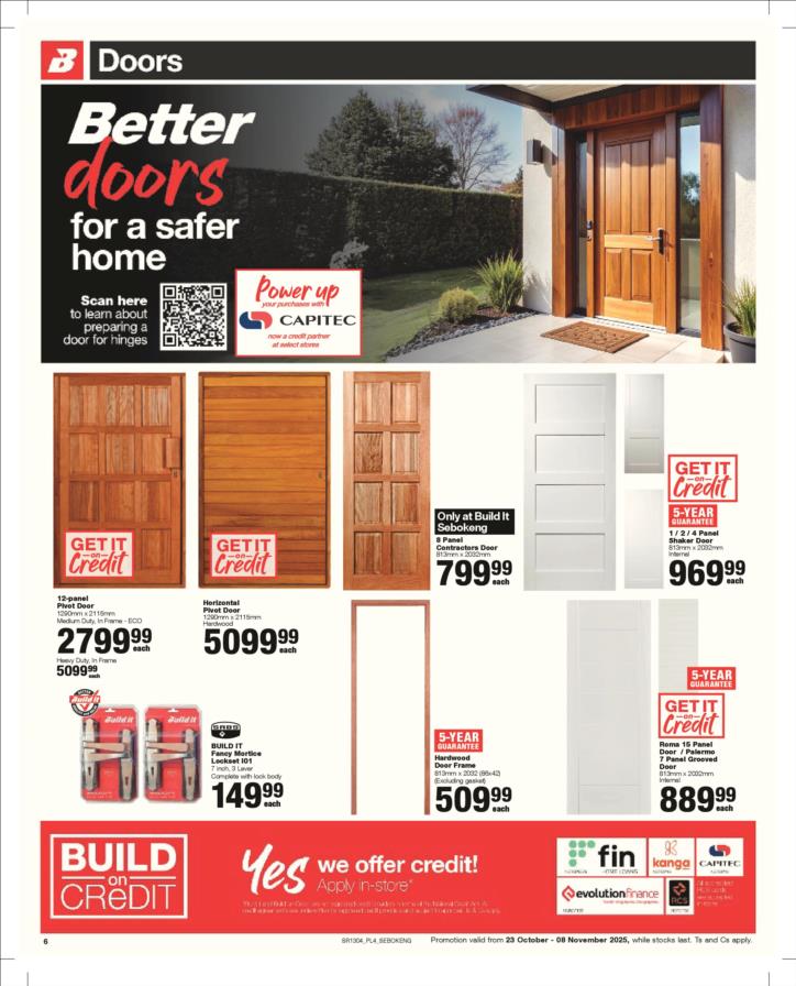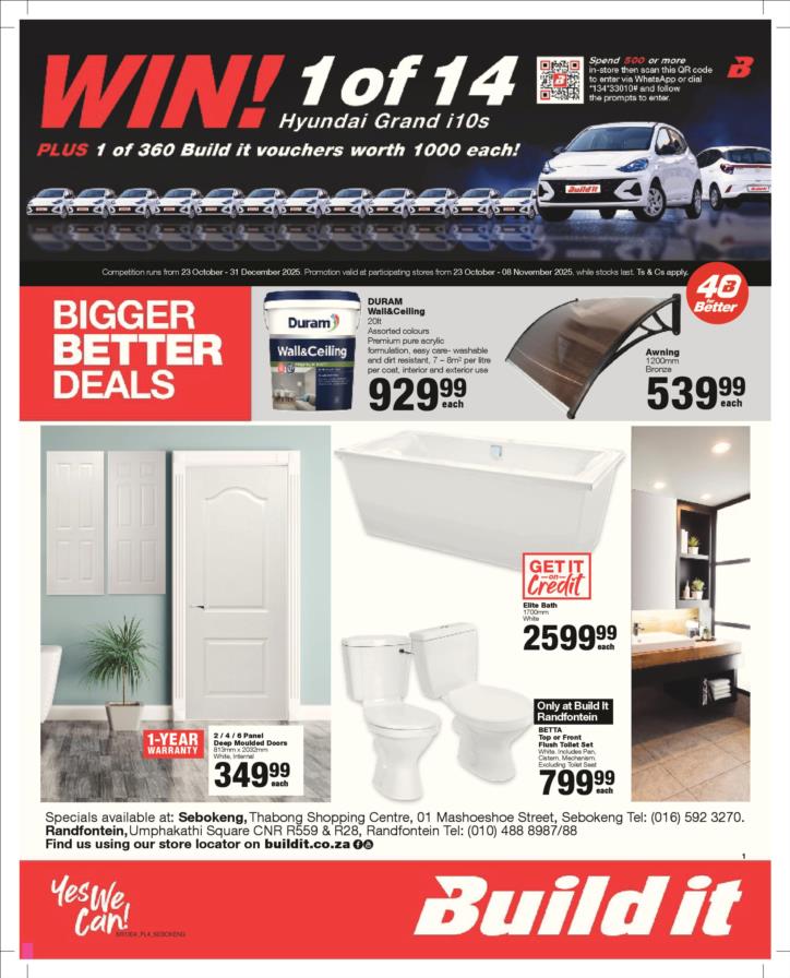 Tel: (018) 065 0899 Mobile: WhatsApp: (060) 531 5964 Email: sales@builditsbk.co.za