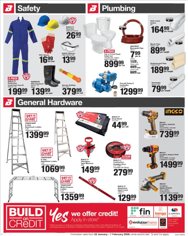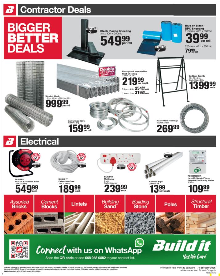 With our core values of Family, Entrepreneurship and Passion being at the heart of everything we do, the Build it group of over 390 stores across Southern Africa has been supplying quality building materials and serving our communities for more than 35 years.Each of our stores is deeply involved in the communities they serve and we believe in giving back to the communities that support us. One of the ways we do this is through initiatives such as our ongoing sponsorship of Under 13 Soccer development in Southern Africa - the youth are our future and by nurturing a healthy lifestyle through sport, we are building a better future for us all.For us at Build it, it’s become about more than just making home building simple. We’re on a mission possible – to turn “no” into “yes”, “can’t’ into “can” and our customers’ dreams into plans! That’s why we’ve adopted a spirit of positivity, a can-do attitude, a powerful essence and a culture that we live by… YES WE CAN!So when customers ask if we can provide the best service, a great range and excellent advice, our answer is always and without doubt…YES WE CAN!