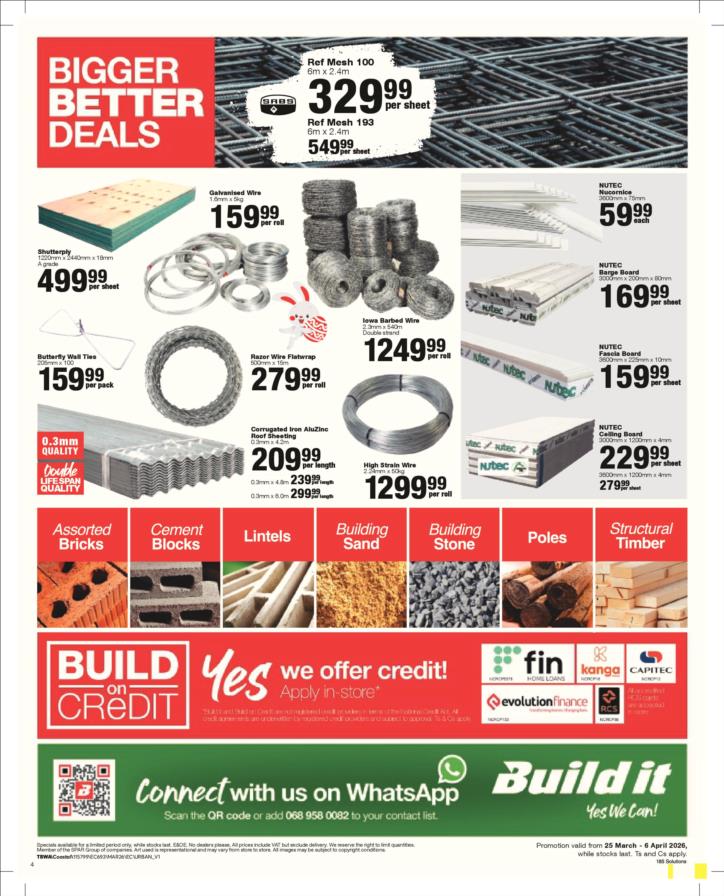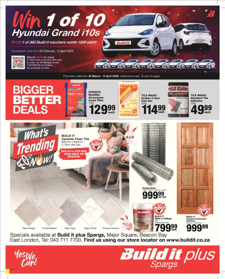 With our core values of Family, Entrepreneurship and Passion being at the heart of everything we do, the Build it group of over 390 stores across Southern Africa has been supplying quality building materials and serving our communities for more than 35 years.Each of our stores is deeply involved in the communities they serve and we believe in giving back to the communities that support us. One of the ways we do this is through initiatives such as our ongoing sponsorship of Under 13 Soccer development in Southern Africa - the youth are our future and by nurturing a healthy lifestyle through sport, we are building a better future for us all.For us at Build it, it’s become about more than just making home building simple. We’re on a mission possible – to turn “no” into “yes”, “can’t’ into “can” and our customers’ dreams into plans! That’s why we’ve adopted a spirit of positivity, a can-do attitude, a powerful essence and a culture that we live by… YES WE CAN!So when customers ask if we can provide the best service, a great range and excellent advice, our answer is always and without doubt…YES WE CAN!