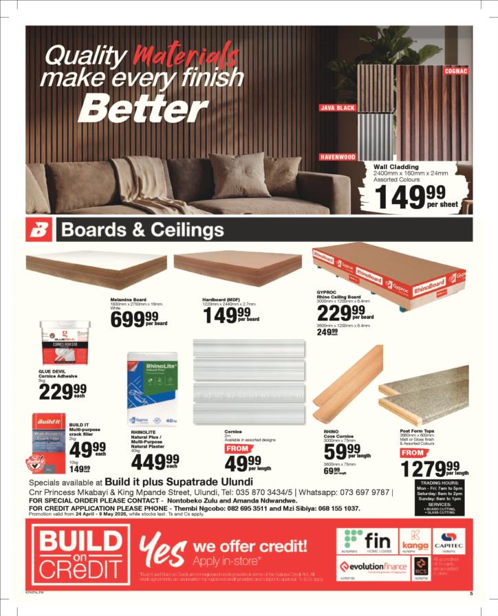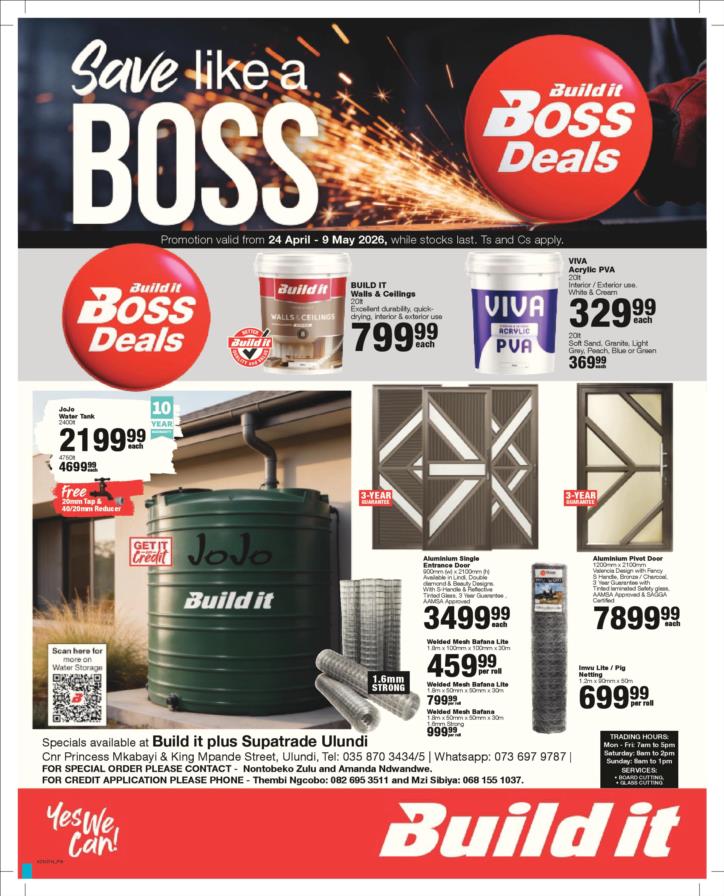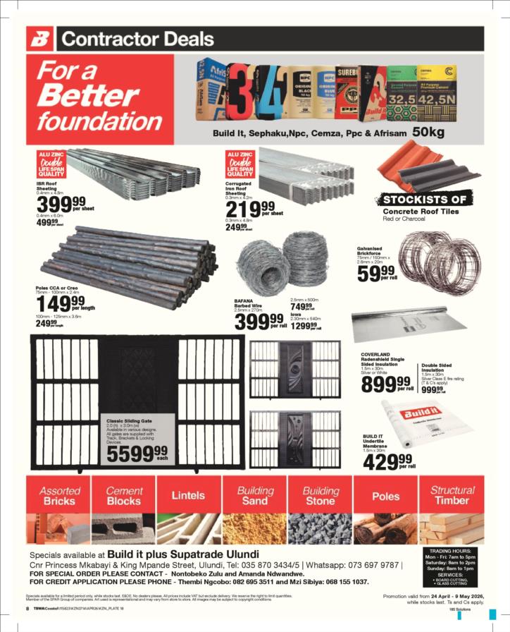 Tel: (035) 870 3434 Mobile: WhatsApp: Email: ulundibuildit1@retail.spar.co.za
