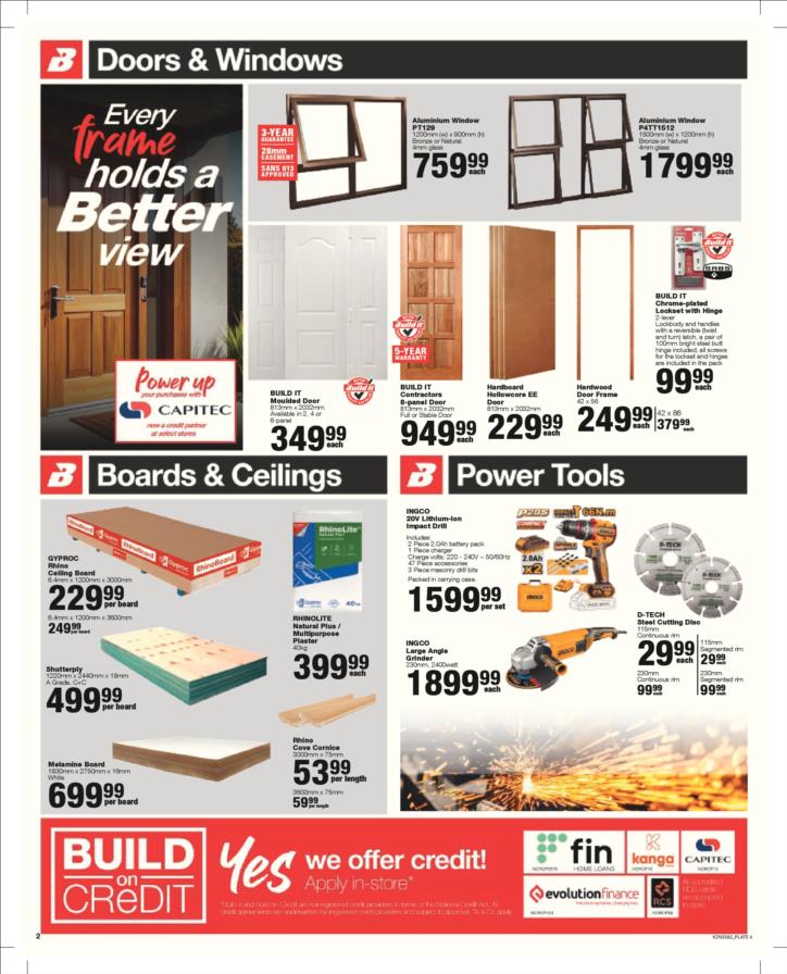 With our core values of Family, Entrepreneurship and Passion being at the heart of everything we do, the Build it group of over 390 stores across Southern Africa has been supplying quality building materials and serving our communities for more than 35 years.Each of our stores is deeply involved in the communities they serve and we believe in giving back to the communities that support us. One of the ways we do this is through initiatives such as our ongoing sponsorship of Under 13 Soccer development in Southern Africa - the youth are our future and by nurturing a healthy lifestyle through sport, we are building a better future for us all.For us at Build it, it’s become about more than just making home building simple. We’re on a mission possible – to turn “no” into “yes”, “can’t’ into “can” and our customers’ dreams into plans! That’s why we’ve adopted a spirit of positivity, a can-do attitude, a powerful essence and a culture that we live by… YES WE CAN!So when customers ask if we can provide the best service, a great range and excellent advice, our answer is always and without doubt…YES WE CAN!