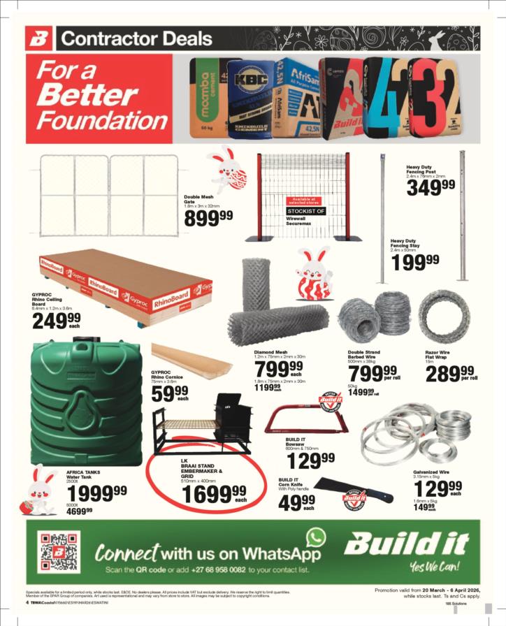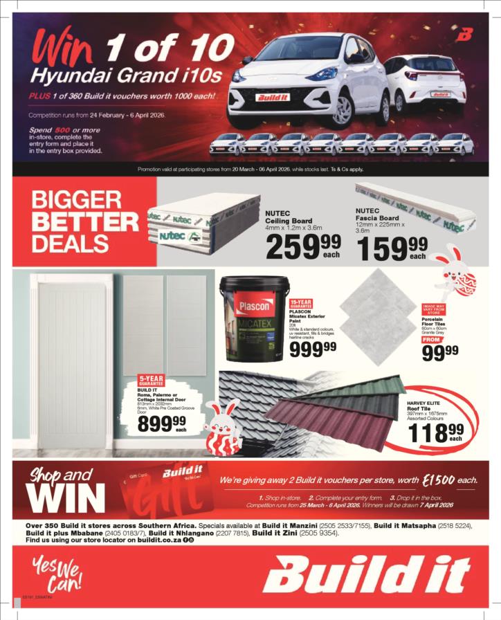 With our core values of Family, Entrepreneurship and Passion being at the heart of everything we do, the Build it group of over 390 stores across Southern Africa has been supplying quality building materials and serving our communities for more than 35 years.Each of our stores is deeply involved in the communities they serve and we believe in giving back to the communities that support us. One of the ways we do this is through initiatives such as our ongoing sponsorship of Under 13 Soccer development in Southern Africa - the youth are our future and by nurturing a healthy lifestyle through sport, we are building a better future for us all.For us at Build it, it’s become about more than just making home building simple. We’re on a mission possible – to turn “no” into “yes”, “can’t’ into “can” and our customers’ dreams into plans! That’s why we’ve adopted a spirit of positivity, a can-do attitude, a powerful essence and a culture that we live by… YES WE CAN!So when customers ask if we can provide the best service, a great range and excellent advice, our answer is always and without doubt…YES WE CAN!